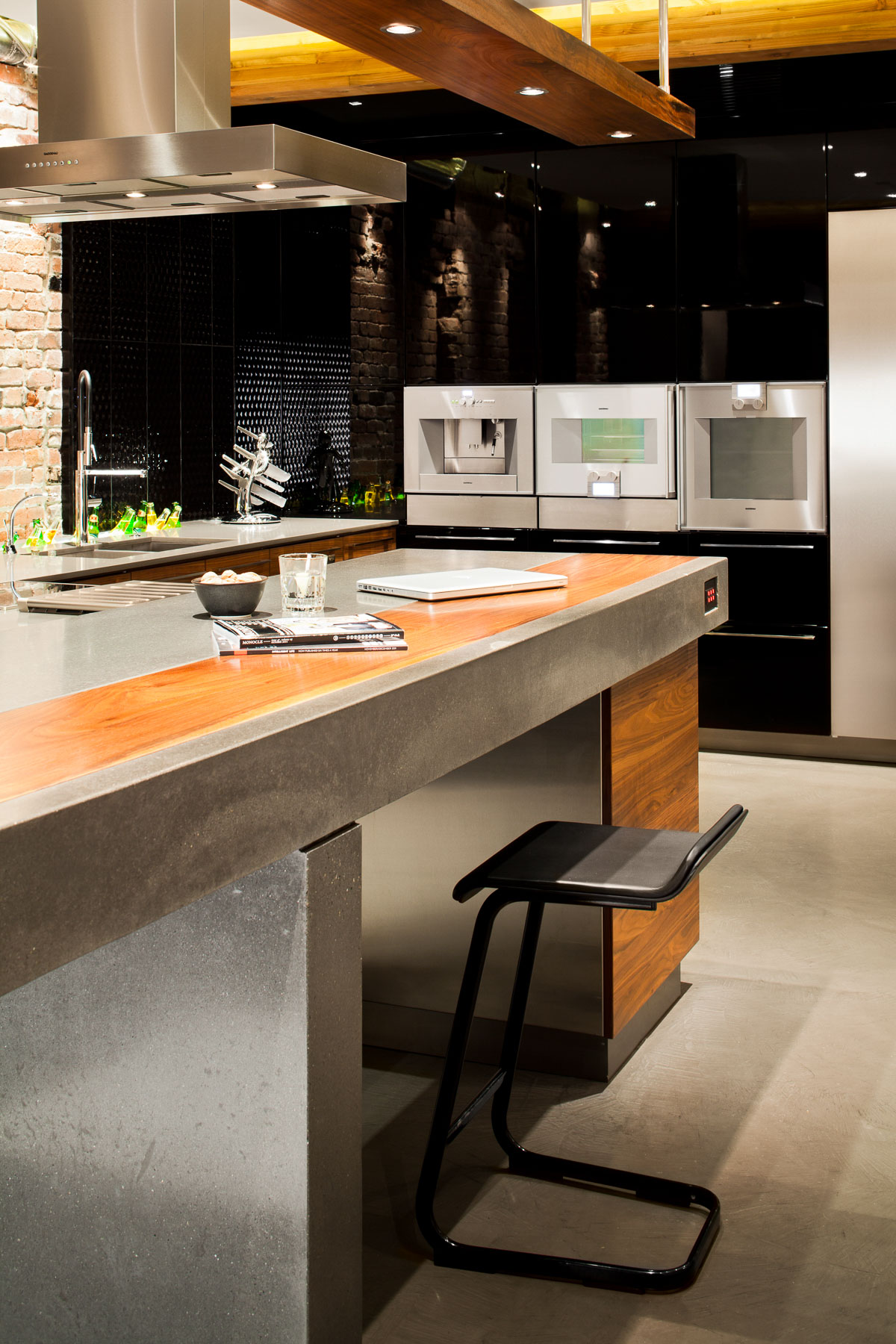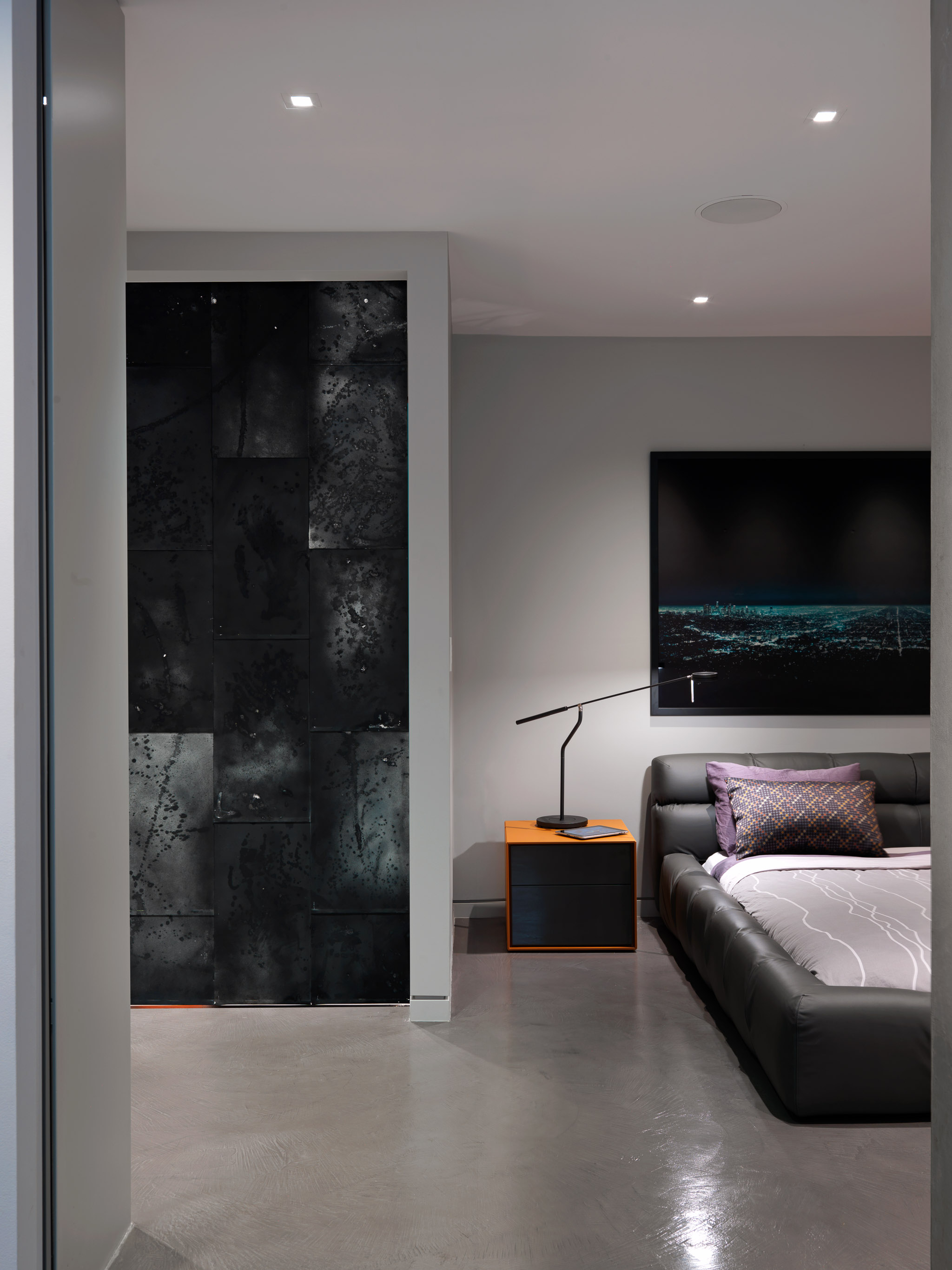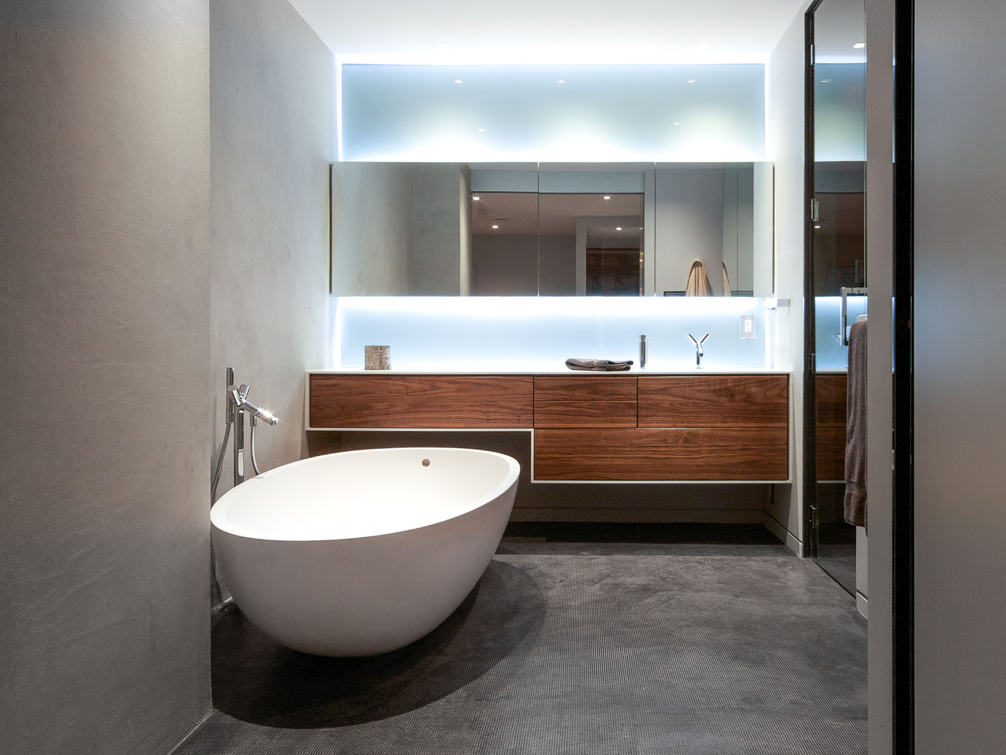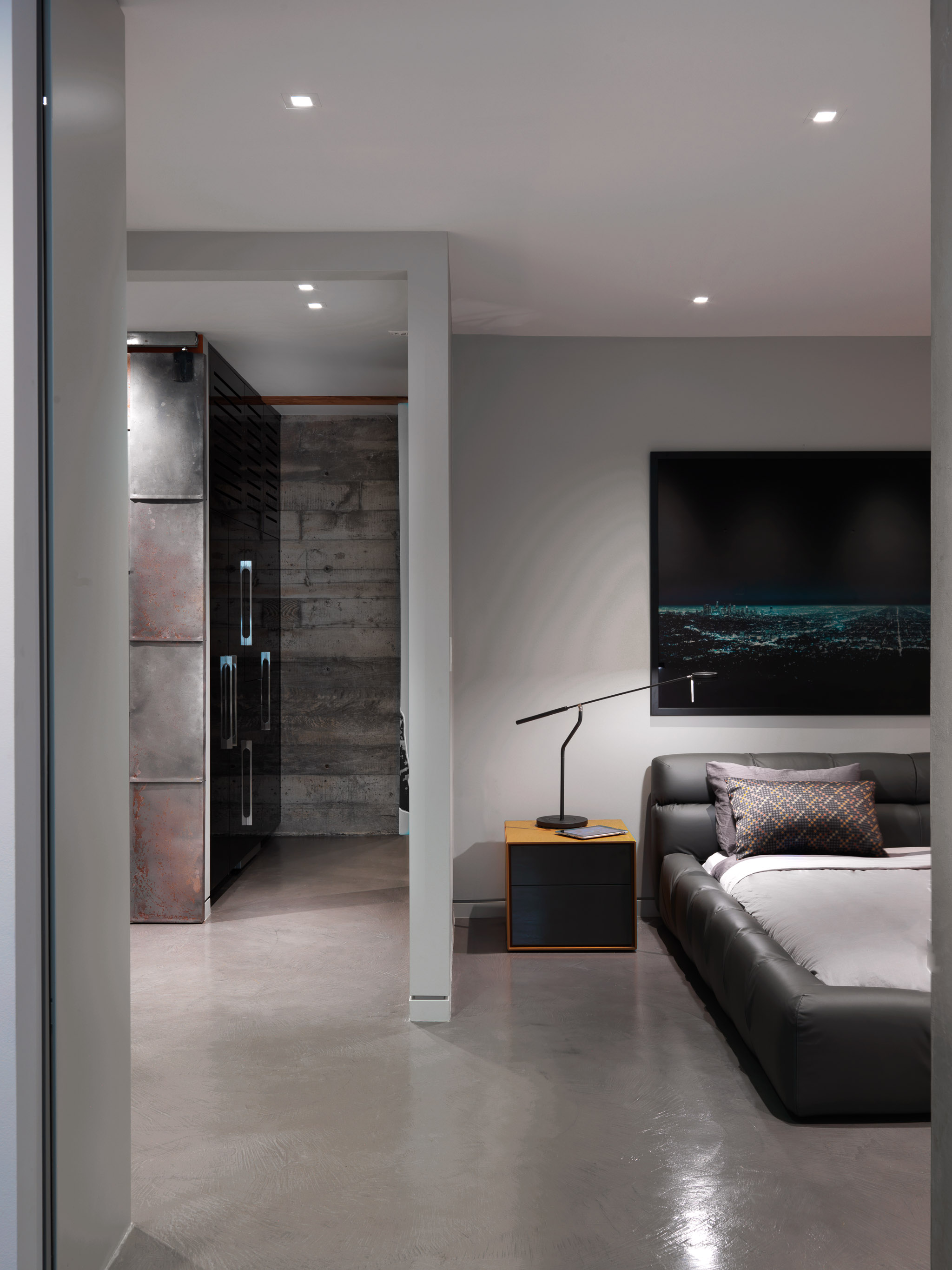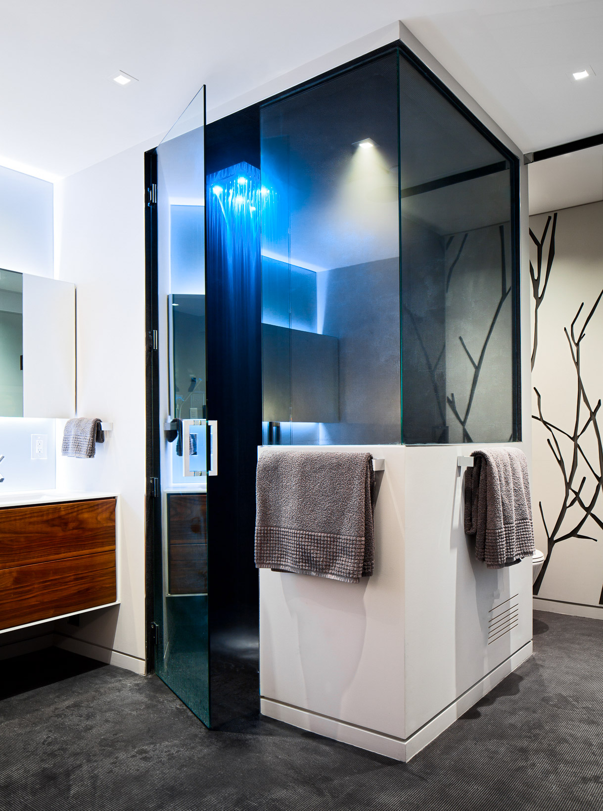 This 1,000 square-foot Yaletown loft belonging to a successful inventor-entrepreneur was to be soiree central for the 2010 Vancouver Olympics. A concept was to juxtapose rawness with sophistication, morphing what was an average two bedroom condo in its most recent life to a loft with concrete floors, brick walls and complemented with glass, walnut, chrome and Corian. All the manly bells and whistle are built-in too, including a custom beer trough, multi-coloured LED rain shower and acoustical features to prevent party noise from reaching the neighbours.