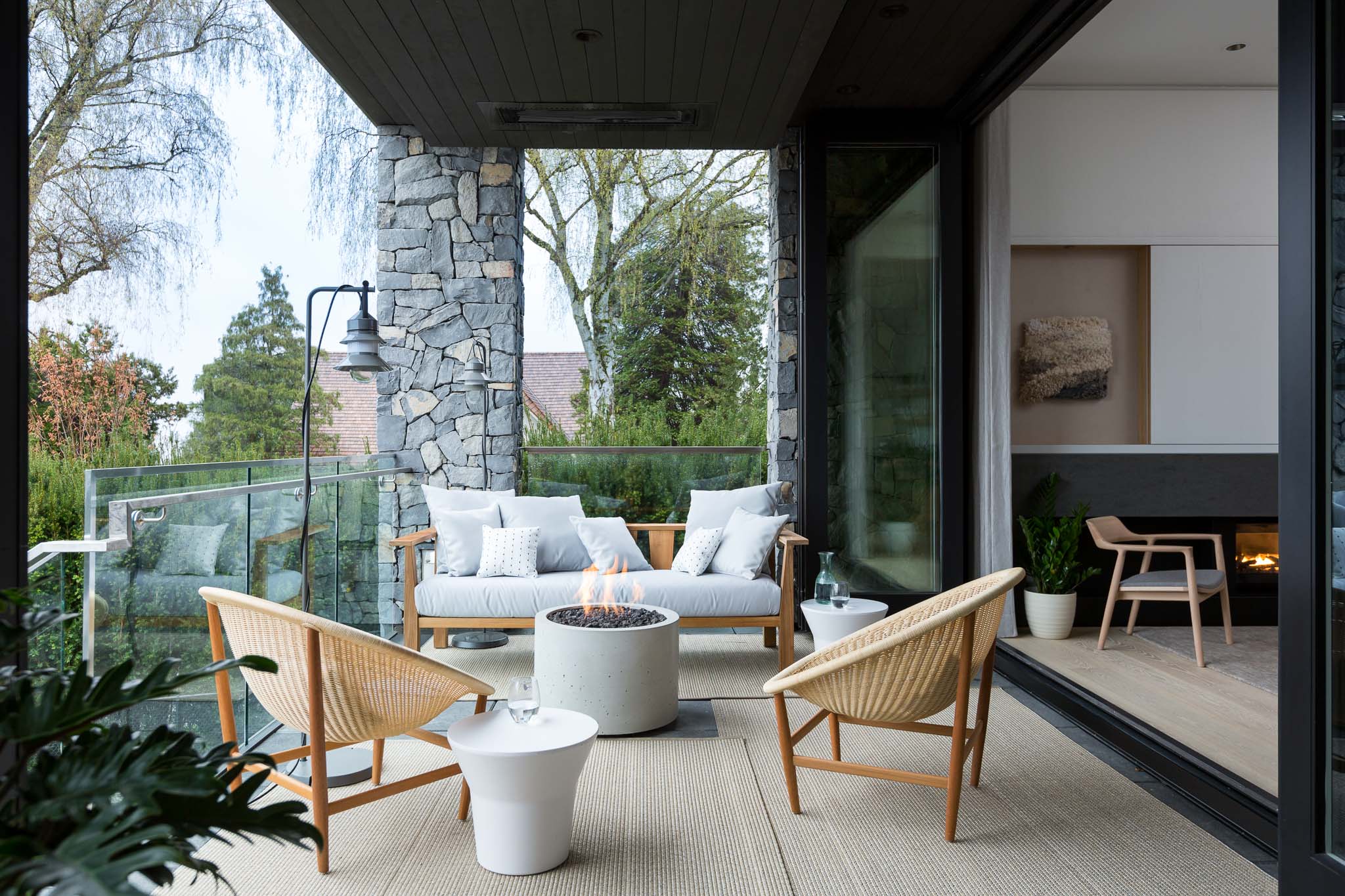 Connectivity between the kitchen, dining room and family room was integral, as was a natural flow from inside to outside for an easy transition from daily family life to hosting larger gatherings. To support this, much of the furniture is strategically light for easy repositioning to accommodate extra guests.